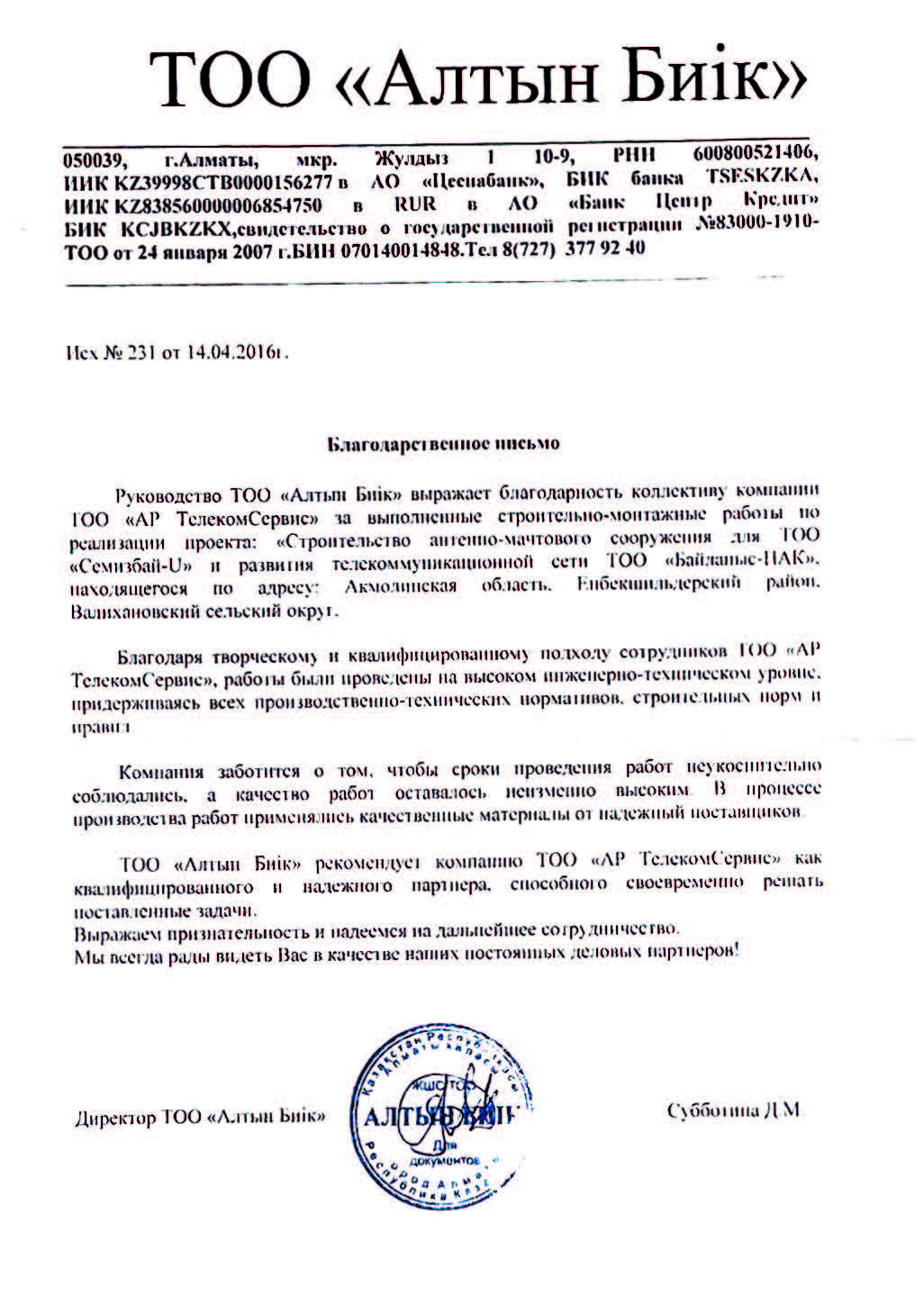Главной ценностью компании является полная удовлетворенность клиента оказанной услугой.